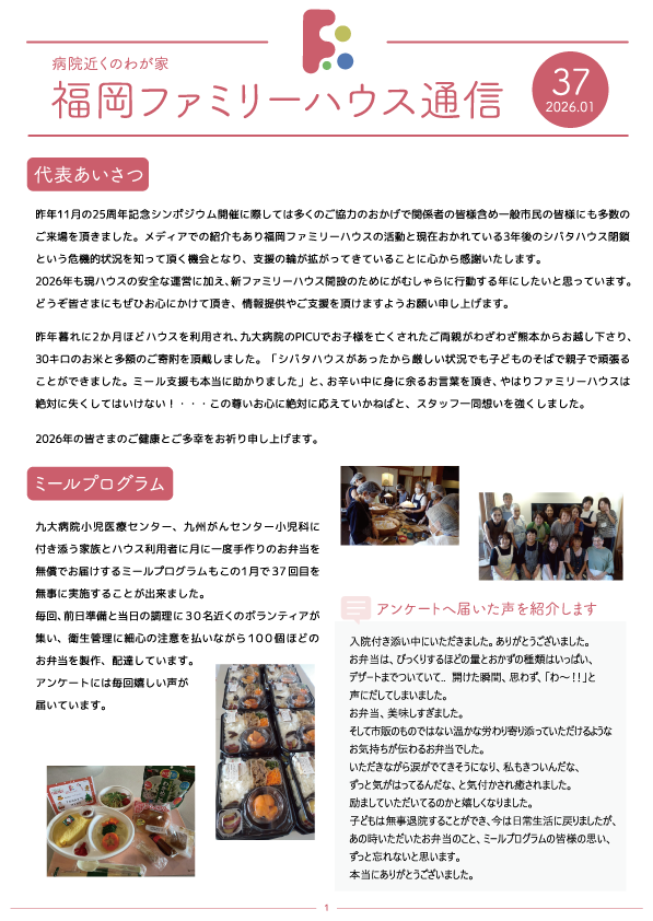 福岡ファミリーハウスは年に2回通信を発行し活動の報告を行っております。